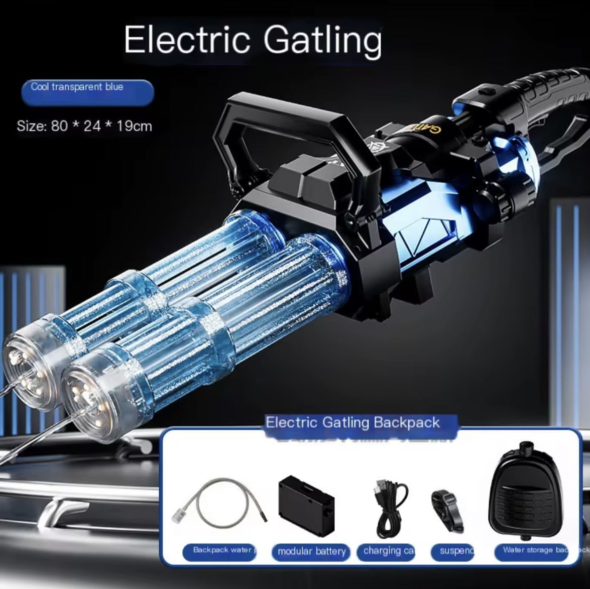 Dobbeltløbet Gatling elektrisk vandkanon – vandleg uden manuel pumpning gør det meget sjover