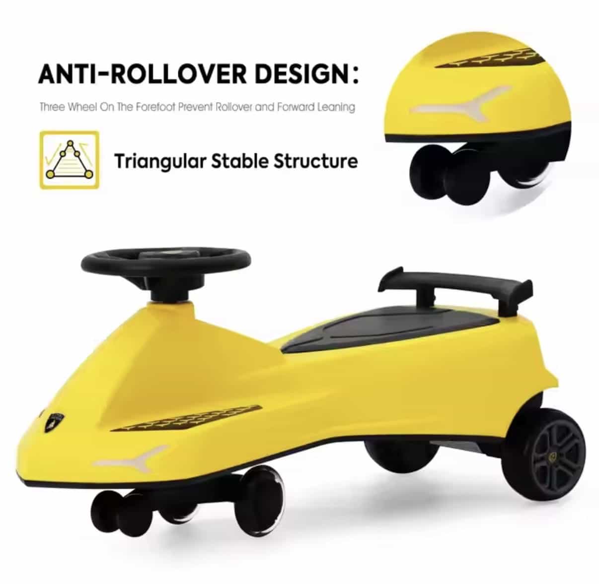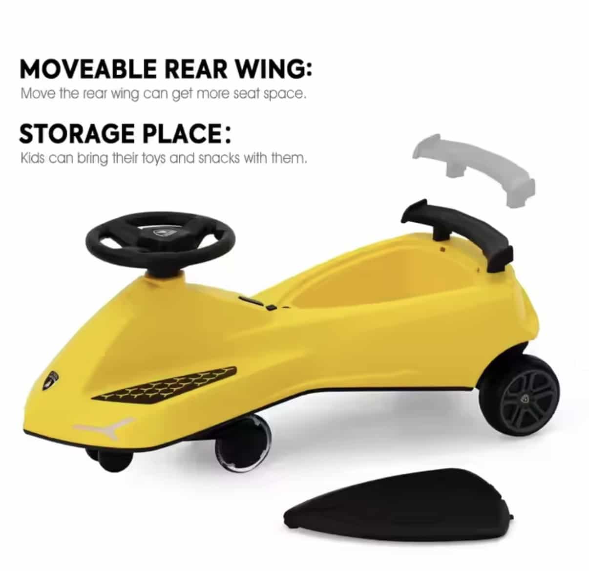 Forside / Produkter / Børne Produkter / Lamborghini sving bil til børn – Musik, LED-lys & stilrent design